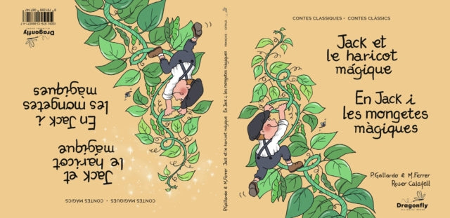 Deux histoires réunies en un seul livre. Voici deux versions du conte classique Jack et le Haricot Magique, réunies dans un même livre. La version classique met en scène un méchant géant qui tente de dévorer Jack, tandis que la version magique met en scène une gentille géante qui l'aide et prend soin de lui. Bilingue Francès et Català, adapté à chaque langue par des philologues spécialisés, pour que les enfants, dès leur plus jeune âge, puissent entendre naturellement deux langues. Toutes les illustrations présentent un jeu de recherche de libellules, rendant la lecture encore plus amusante. 2 contes en 1 llibre. Es tracta de dues versions del conte clàssic en el mateix llibre, de Jack i les mongetes màgiques, la versió clàssica, amb un gegant dolent que intenta menjar-se a Jack i la versió màgica en la és una Geganta bona que ajuda i cuida Jack. Bilingües en Francès i Català, adaptat a cada idioma per filòlegs dels respectius idiomes, de manera que els nens des de primeres edats, vagin escoltant dos idiomes de manera natural. Totes les il·lustracions compten amb un joc de trobar la libèl·lula, per fer la lectura encara més divertida.