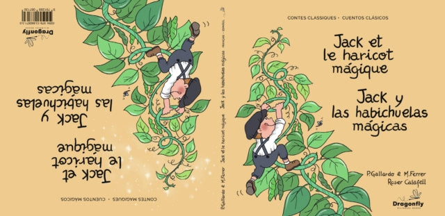 Deux histoires réunies en un seul livre. Voici deux versions du conte classique Jack et le Haricot Magique, réunies dans un même livre. La version classique met en scène un méchant géant qui tente de dévorer Jack, tandis que la version magique met en scène une gentille géante qui l'aide et prend soin de lui. Bilingue Français et Espagnol, adapté à chaque langue par des philologues spécialisés, pour que les enfants, dès leur plus jeune âge, puissent entendre naturellement deux langues. Toutes les illustrations présentent un jeu de recherche de libellules, rendant la lecture encore plus amusante. 2 cuentos en 1 libro. Se trata de dos versiones del cuento clásico en el mismo libro, de Jack y las habichuelas mágicas, la versión clásica, con un gigante malo que intenta comerse a Jack y la versión mágica en la es una Gigantesa buena que ayuda y cuida de Jack. Bilingües en francés y español, adaptado a cada idioma por filólogos de los respectivos idiomas, de manera que los niños desde tempranas edades, vayan escuchando dos idiomas de manera natural. Todas las ilustraciones cuentan con un juego de encontrar la libélula, para hacer la lectura aún más divertida.